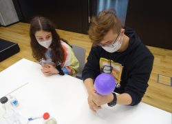 Zadania były bardzo zróżnicowane. Pierwszy ich zestaw dotyczył eksperymentów, które można łatwo wykonać także w domu. Dzieciaki z zapałem wykonywały kolejne zadania. Udało się m. in. stworzyć własną “lampę z magmą” i zbadać właściwości niektórych gazów. Prawdziwe domowe laboratorium!